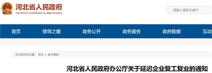 1月30日,河北省人民政府办公厅发布《关于延迟企业复工复业的通知》(以下简称《通知》)。