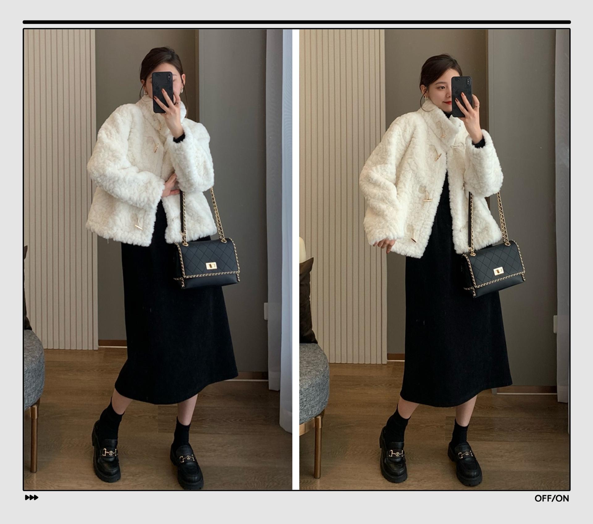 冬季里白色的毛毛外套是我的最爱,短款的版型无需担心它会压身高,内搭黑色高领毛衣,组成黑白配不显单调。