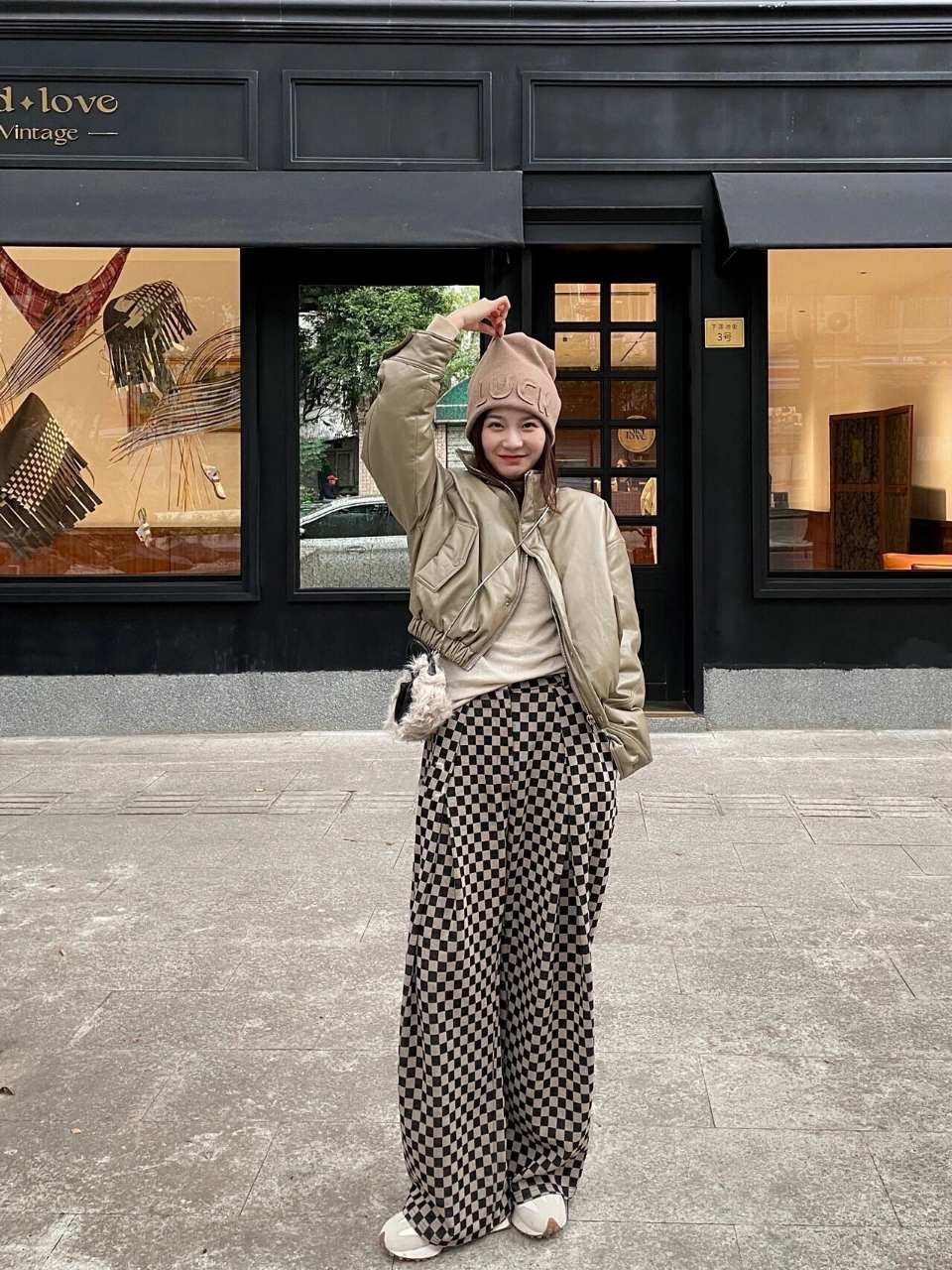 所以建议大家若是利用这类羽绒服凹造型尽量让下半身搭配厚实一些,并且远离短裙和短裤,毕竟保暖才是我们冬季搭配的第一要义。