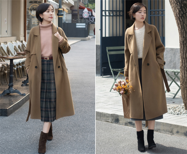在冬季穿大衣的时候最好敞开,露出你的腰线,搭配高腰半身裙的时候也可以更明显地分割你的身材,避免五五分以及显胖的问题。