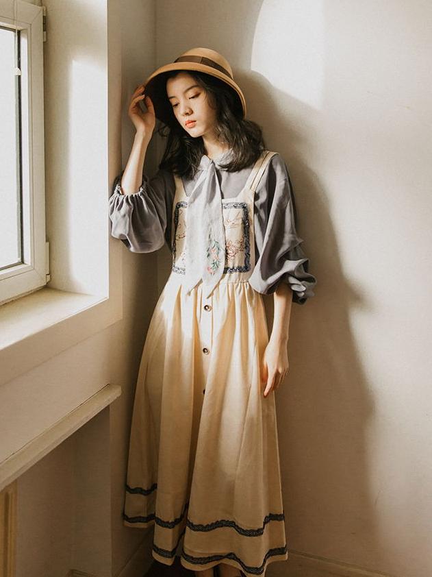 但如果让半身裙作为整体穿搭中的亮点,那建议你选择有记忆点的单品,比如印花裙、背带裙这种成熟优雅不显小家子气的单品。