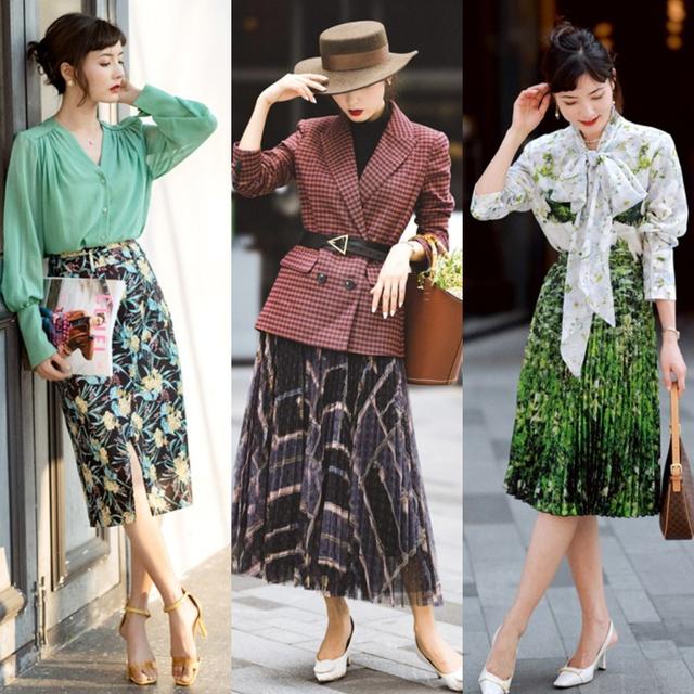 如果是想把“衬衫+半身裙当休闲穿搭的话,那我们就可以多多尝试颜色吸睛或者款式特别的衬衫,比如下图博主穿的雪纺衬衫和印花衬衫等等。