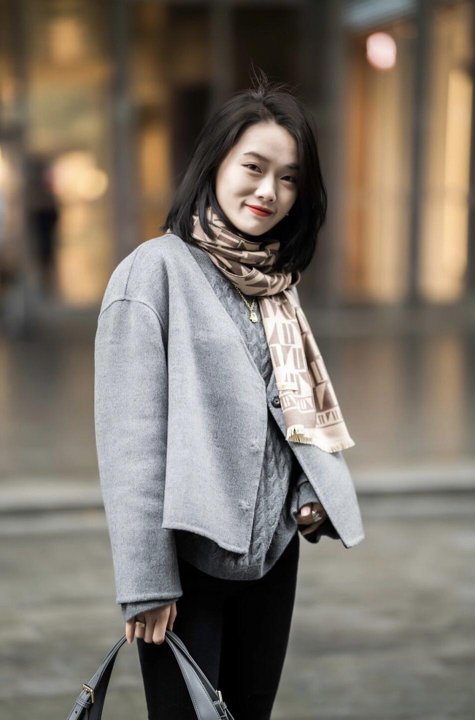 接下来为你介绍的是一件灰色短毛呢外套,这个颜色非常有质感,高级又大气,显白效果不必说,与黑色一样优越,它会让你看起来更加容光焕发,走低调路线的美眉选择同色系内搭就够了,这样会起到顺延视觉效果的作用,看起来和谐自然,不会显得突兀。