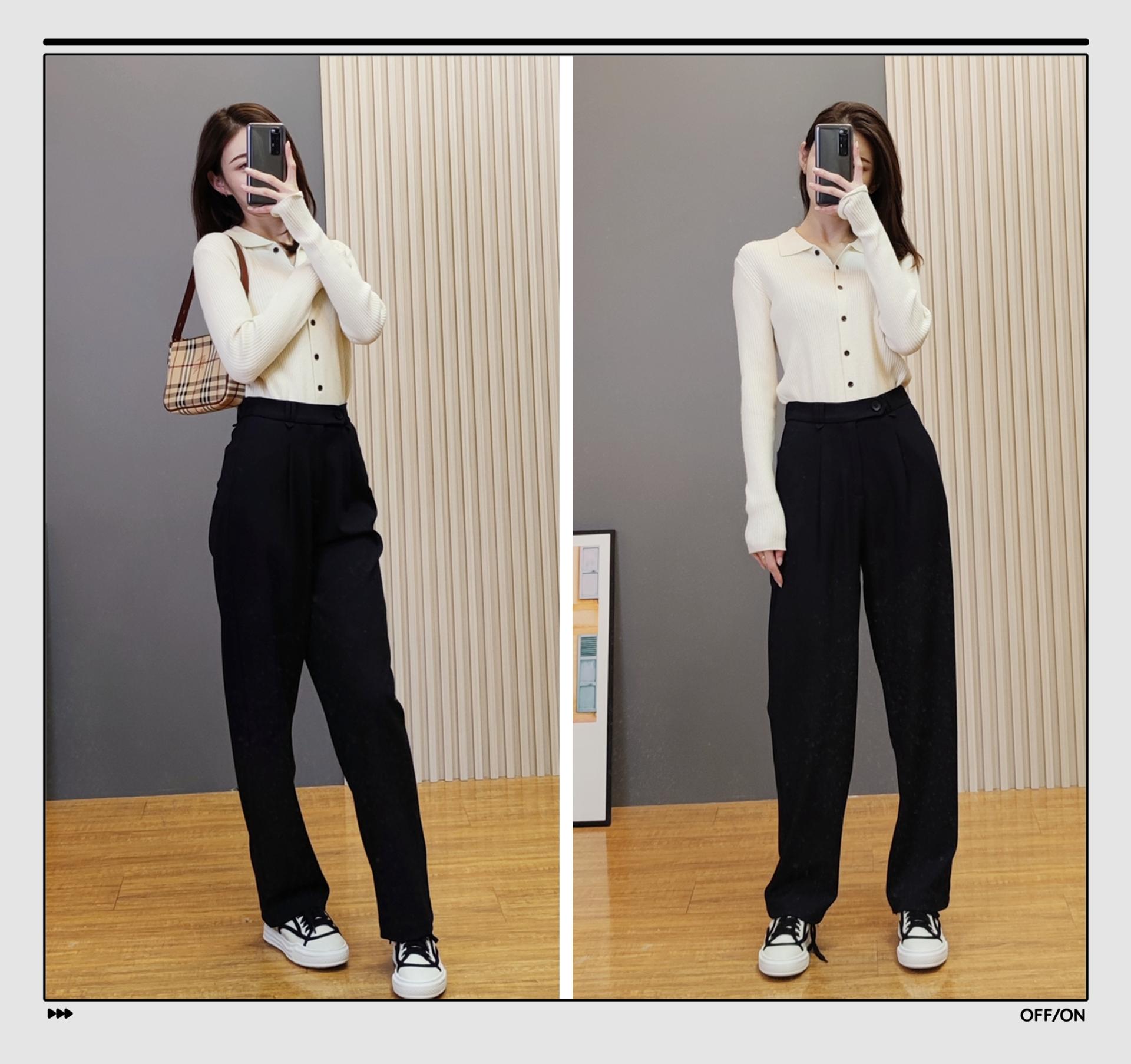 从秋天穿到现在的Polo领毛衣,米白的颜色穿上身特别显温柔,与黑色阔腿裤搭配在一起,是我超爱的黑白配。