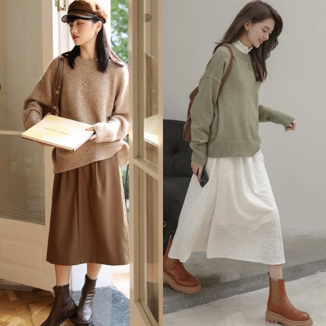 今年新年女生怎么穿搭最时尚 不妨试试毛衣+半身裙+短靴 温柔又减龄(2)