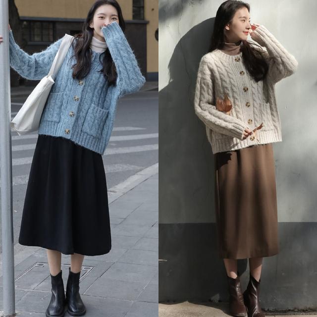 除此之外,麻花款式的毛衣开衫相对套头式毛衣来说不仅穿脱更加方便,可以根据气温随时调节;而且还能够把重点聚集在上半身,重点更加鲜明,特别适合小个子。