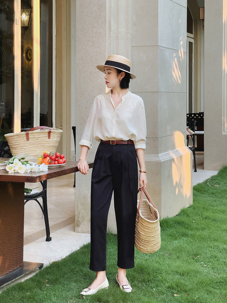 而且西装裤的风格也是很多变的,职场或者日常都可以穿,平日生活中你可以用下面这种黑色的西装裤搭配白衬衫,黑白配看上去很低调大方,同时也可以塑造出沉稳感,对于年龄大的女性来说还挺友好。