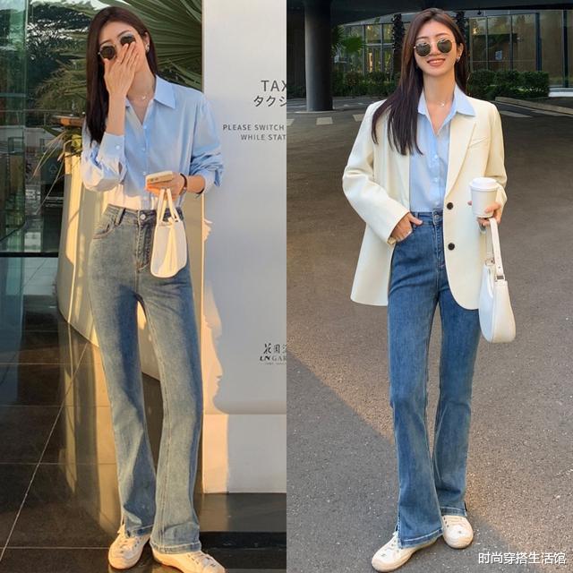 小个子建议选高腰喇叭裤,提升腰线,视觉增高,衬衫选择短款的最好,露脐最佳。如果是上班通勤,衬衫+西装喇叭裤更合适,正式高级显气质,喜欢休闲风的可以尝试牛仔喇叭裤,随性自然~