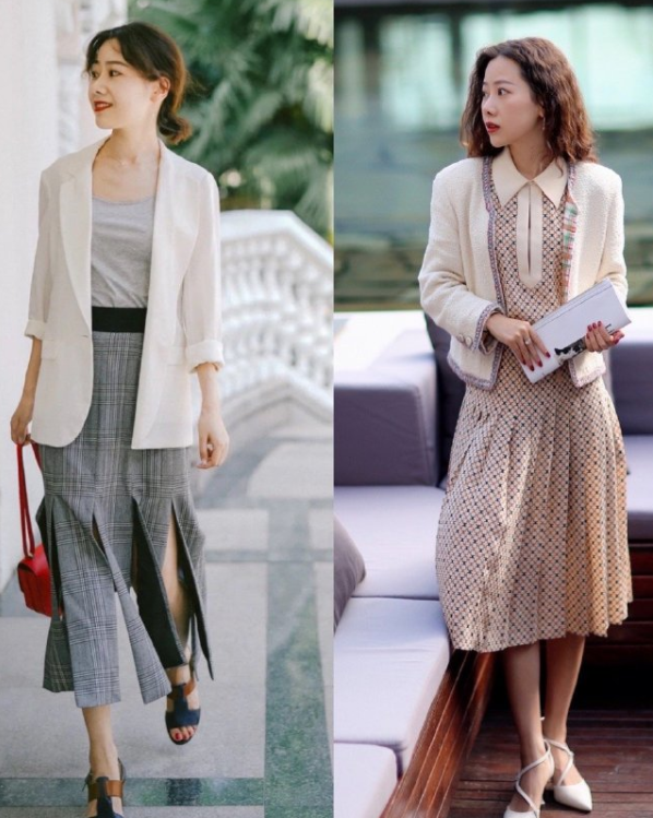 在春夏季节想要穿得优雅得体,西装这件单品一定不要错过,你可以选择材质轻薄一些的西装,有垂感同时又能修身,而且在上班的时候穿也是没问题的,用西装可以搭配不同的内搭,无论是连衣裙还是搭配简单的t恤都挺美。