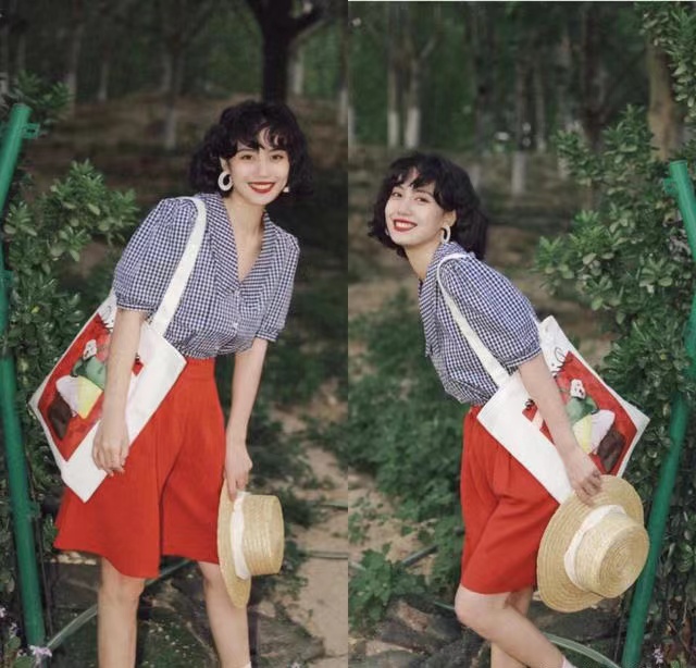 衬衫不单可以和半身裙,裤子搭配,和中裤也一样好看,全身上下不超3种颜色,蓝色条纹衬衫配红色中裤,在色彩上可以得到中和的视觉,让人忍不住去多看几眼。