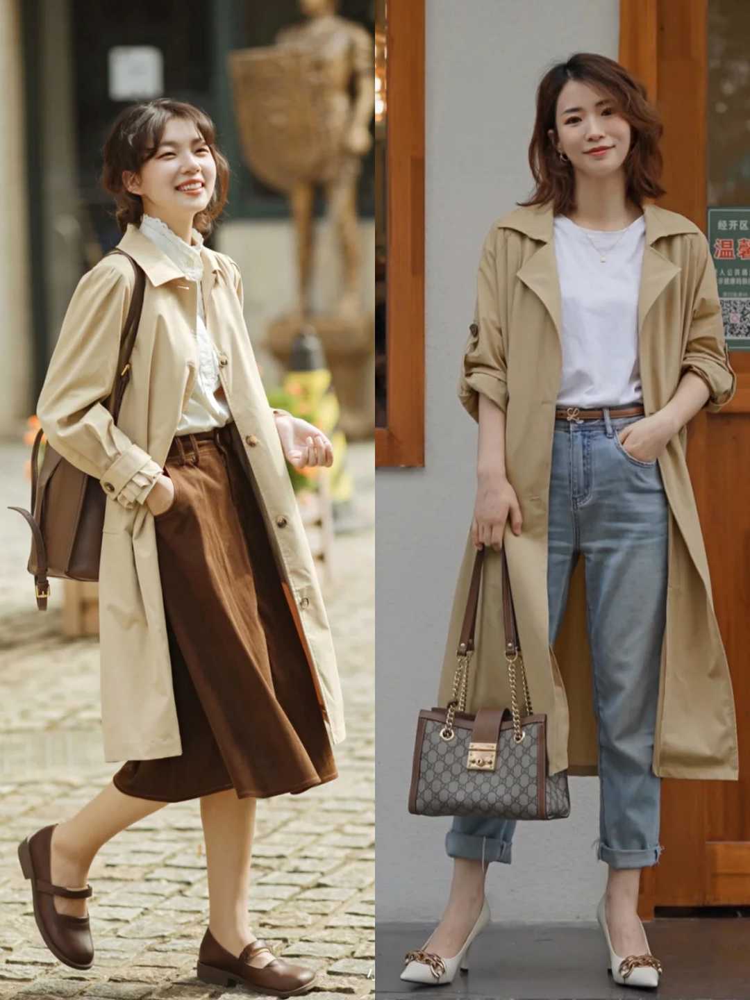 挑选风衣的时候,颜色也是比较关键的,如果你想避免踩雷,我推荐你多尝试基础的卡其色风衣,虽然看着有些单调和普通,但对于大多数人来说也是最耐看的。不容易出错,而且非常的百搭,像这种简单的卡其色风衣也很适合黄黑皮。