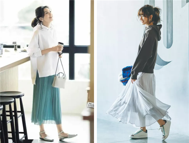 春天是我们穿卫衣的季节,所以面对卫衣的时候,大家不用总是搭配牛仔裤,可以切换成裙装造型,展现出温柔气息,尤其是博主用这种宽松的卫衣搭配上一条优雅半身裙,都能够化解卫衣本身带来的休闲感,让你的穿搭更富有女人味。
