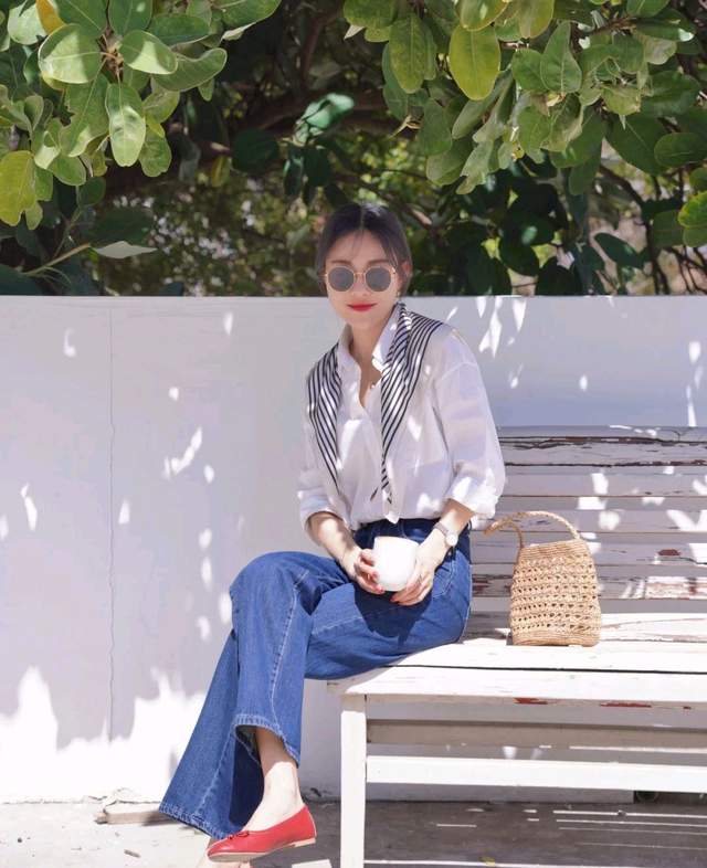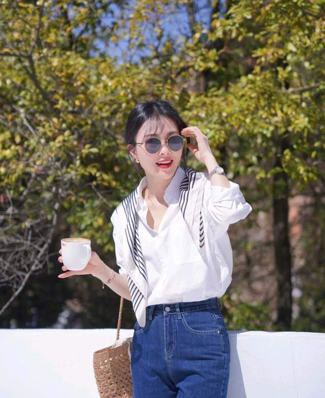 春季女生衬衣怎么搭配下身好看?牛仔衬衫+深蓝色西装裤 洋气又显高(6)
