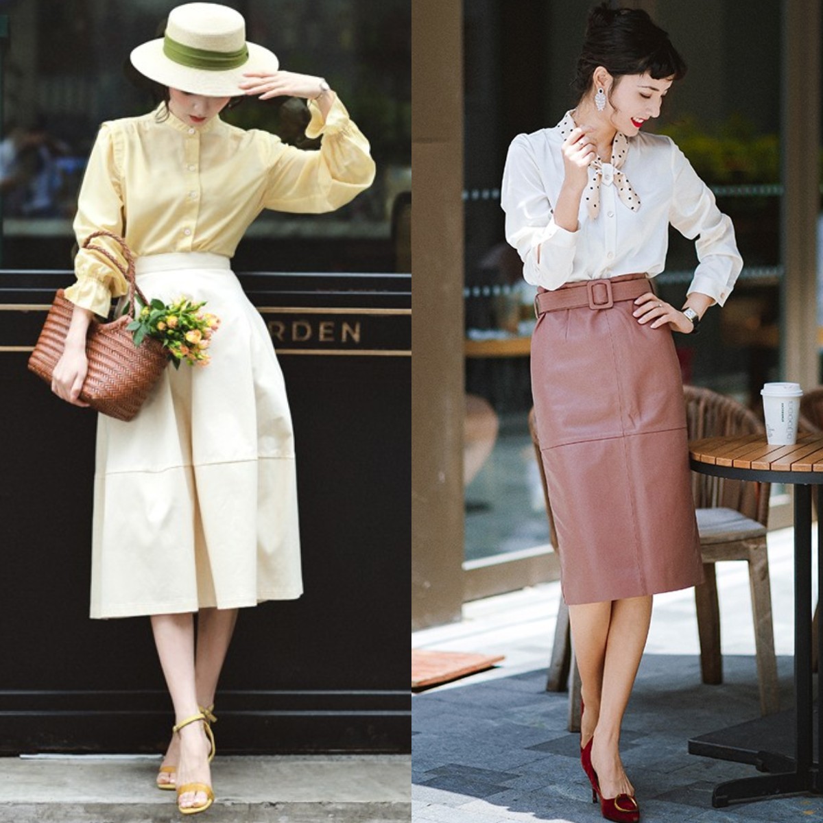 对于30+岁穿衣风格较为轻熟的姐妹,就可以pick白色或者莫兰迪色系的衬衫来搭配半身裙+高跟鞋,打造小香风穿搭,突出风格优势!