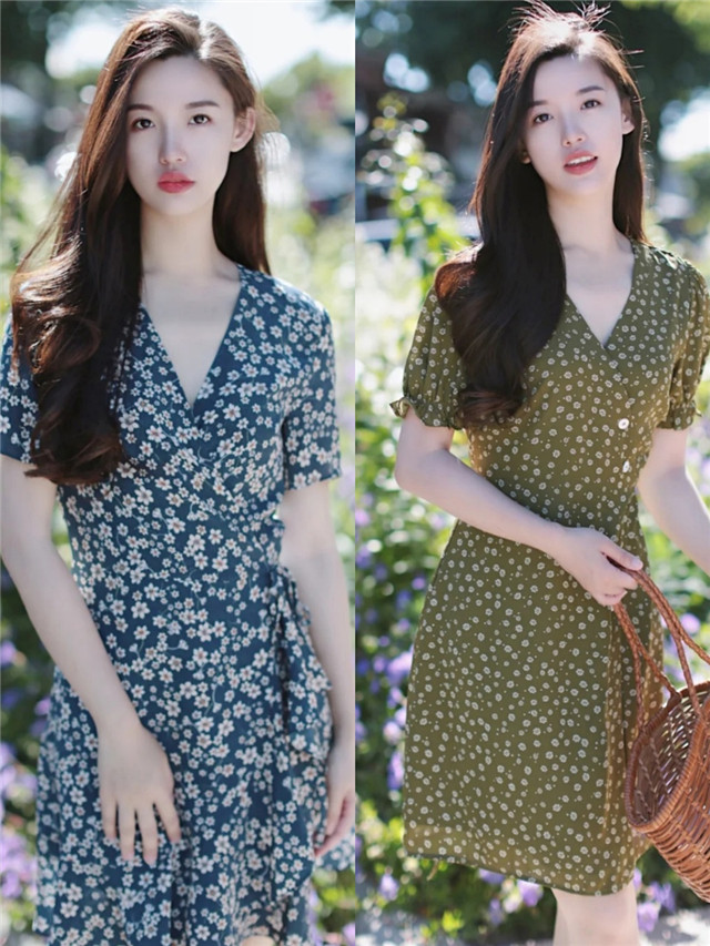 选择碎花裙其实没有那么难,首先要注意领口的设计,相比圆领更推荐你们多尝试v领的设计,拉伸颈部线条,降低碎花裙的厚重繁杂,看上去更轻盈,而博主这些v领的裙装造型也能够修饰锁骨,看上去格外显瘦。