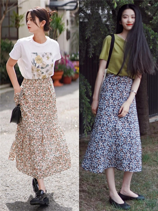 下面这些博主搭配的裙装花色都比较清新,整体的花色也不是特别的繁杂和密集,用简单的碎花去修饰,能够帮我们调节皮肤的状态,搭配纯色的T恤或衬衫,这些也能够体现休闲感。