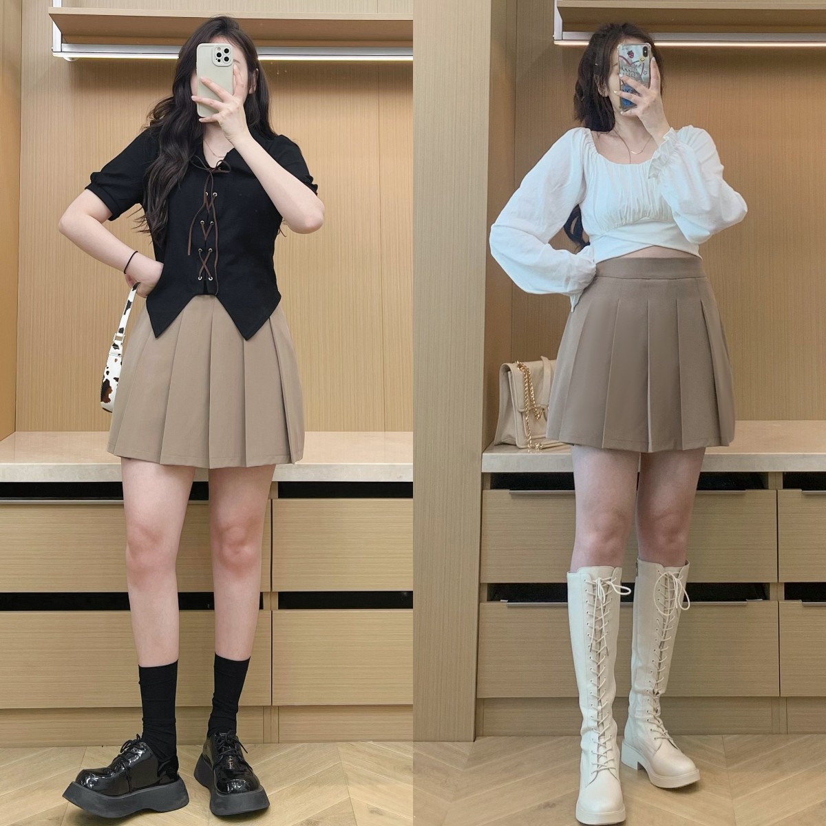 无论是对于小个子女生还是微胖女生,高腰A字裙都是需要衣橱必备的单品。高腰的设计,可以提高视觉腿长,切割身材比例,A字的版型,可以轻松藏匿自己的假胯宽和腹部赘肉。同时,高腰A字短裙还是一款非常青春元气的单品,特别适合塑造学院风和元气风造型look!