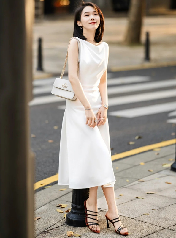 很多身高不足160的中年女人,单一地认为自己不够高只能穿短款裙子,觉得撑不起来长款裙子、会拉低身高。其实,这就是一个常见的穿裙误区。