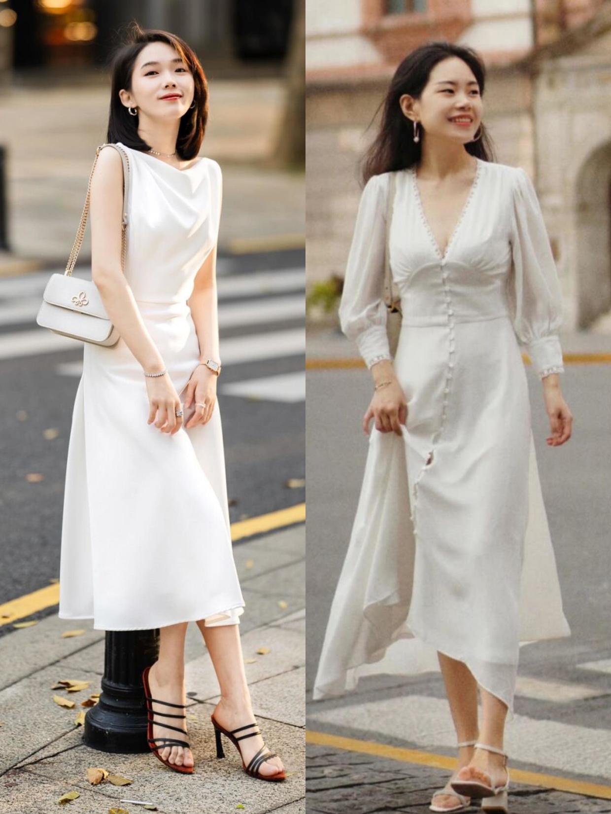 纯白色连衣裙能够很好地打造女神感,虽然白色是一个很容易让人觉得寡淡的颜色,但其实只要挑选的连衣裙版型和剪裁适合自己,融合白色反而能够让我们在人群中更加闪亮。大家可以根据身材情况,入手无袖或者是长袖的款式。