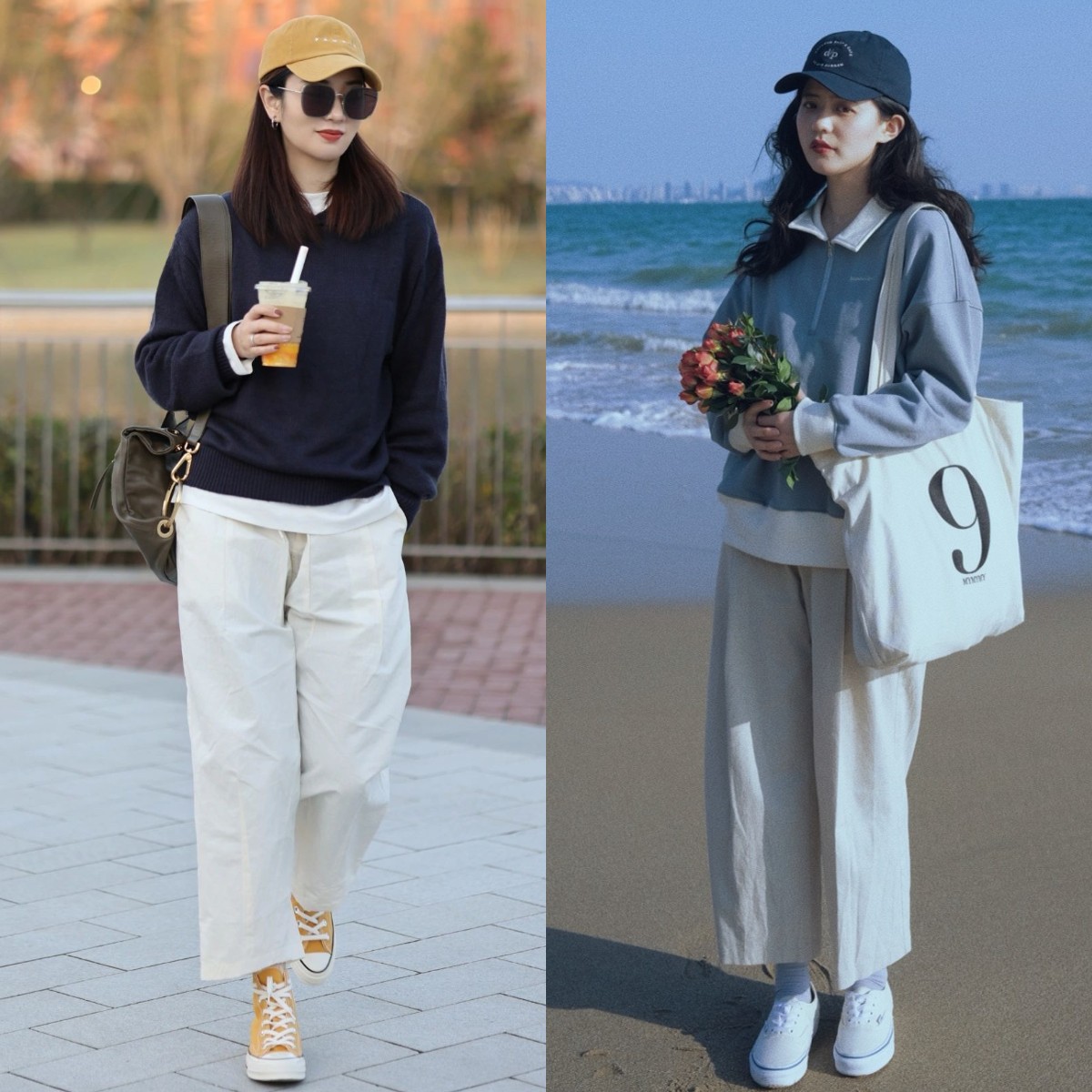 腿粗的姐妹们,可千万不能错过阔腿裤和帆布鞋的搭配。阔腿裤的裤腿宽松肥大,能轻松解决腿部的一切短板,不管是腿型不直还是小粗腿都能轻松遮住。