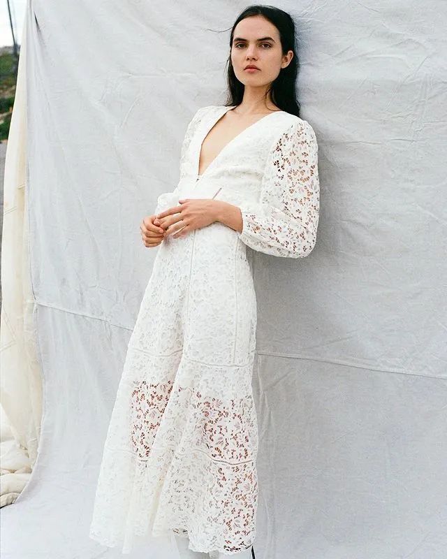 轻薄透气的蕾丝连衣裙,可轻盈妙曼,可优雅自然。简约的白色蕾丝连衣裙,配上黑色的奶奶鞋穿搭,乖巧可爱中带着些成熟优雅的韵味。