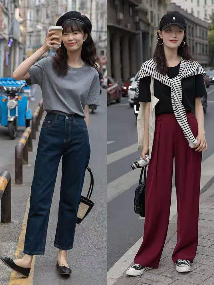 Tips4:纯色T恤+阔腿裤