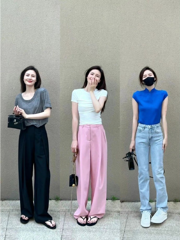 想要把身材瑕疵真正隐于无形,一要靠单品面料的挺括感支撑,二是需要靠单品的宽松度加持,这种情况下,选择略微修身的牛仔裤、牛仔裙、效果会更好,紧身或者过度宽松的下装都不要碰。