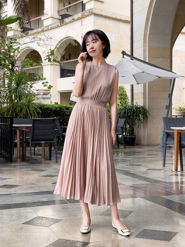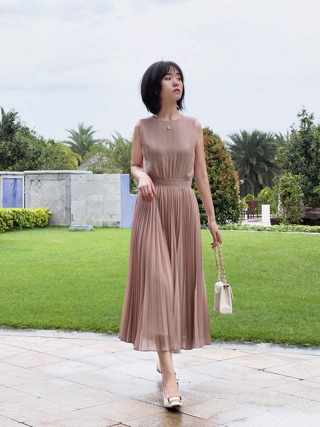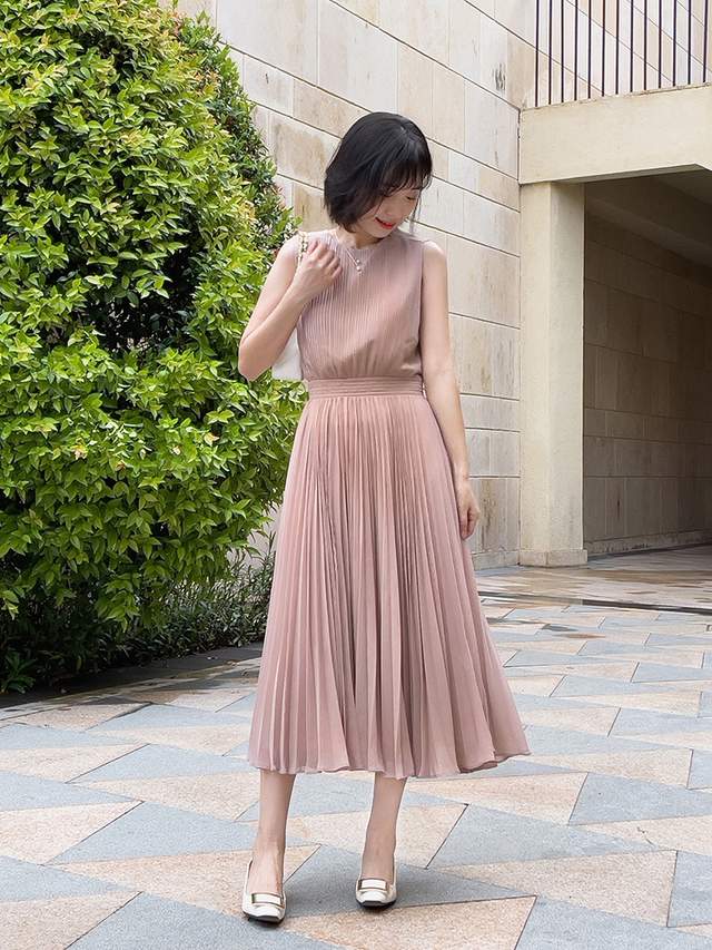 可以借鉴一下这位时尚博主的穿搭风格,她选择了裸粉色连衣裙来穿,这条连衣裙虽然一眼看上去很简约,但穿在身上却很有气质,也很有女人味,重点是不会觉得老气,更不会觉得稚嫩。