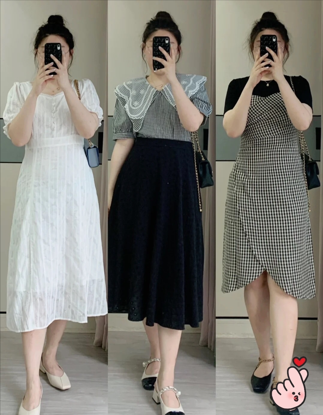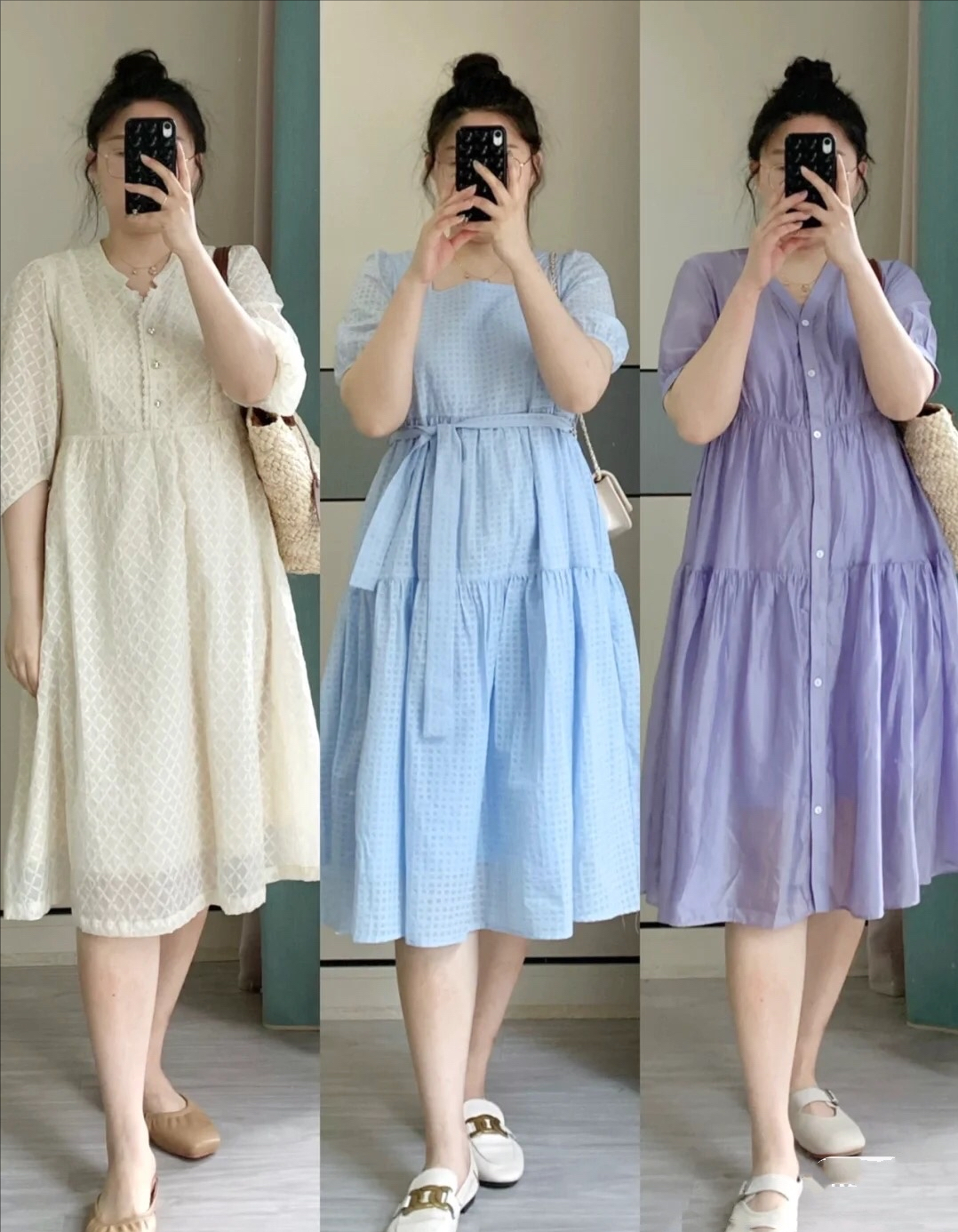 这几件都是很适合微胖女孩的夏日连衣裙,高腰线的收腰设计配合微微散开的A字大裙摆,可以拉长比例凸显腰线,也能对微胖女孩的小粗腿起到很好地修饰效果。