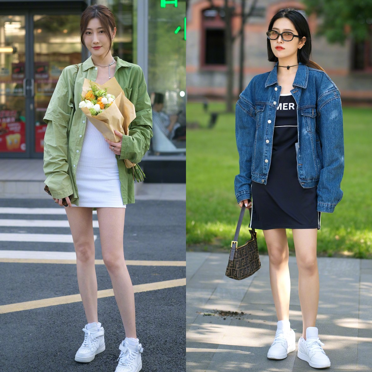 身高不在线的小个子,还可以选择膝上长度的包臀裙搭配小白鞋,露出部分大腿以及小腿,更能延长你的腿部线条,穿出大长腿的效果。