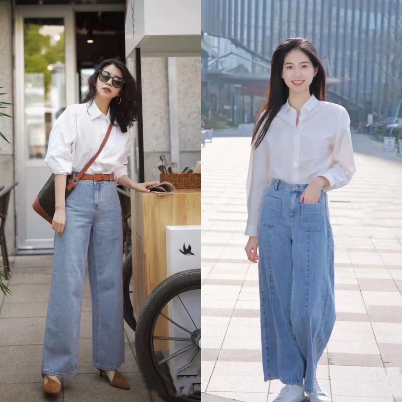 穿法:白衬衫+牛仔裤