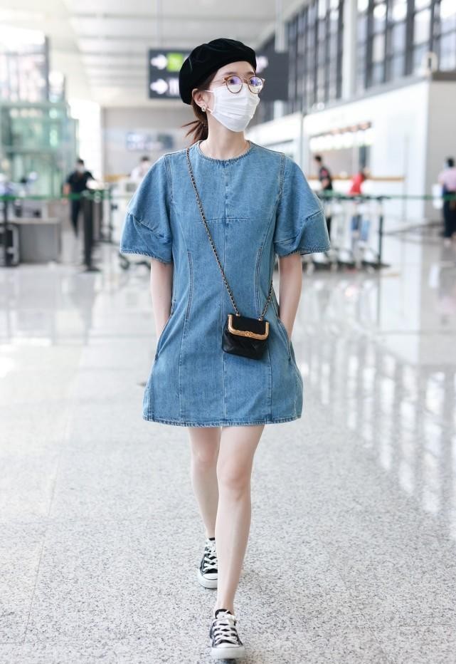 背带的牛仔裙也是一种连衣裙的款式,不过没有直接穿设计得简单的连衣裙那么好搭配,牛仔连衣裙的风格大部分都是很有淑女感的,往往会搭配上泡泡袖的元素。这里推荐尝试类似普通短袖的连衣裙,脸蛋瘦瘦的人和脖子长的人更适合加上泡泡袖。