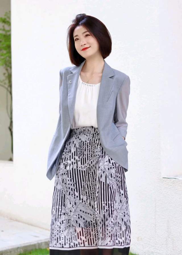 西装搭配半身裙也是很不错的选择,两者搭配在一起不仅能轻松呈现出时尚感,而且还能突出女性特有的温柔气质,可以借鉴一下这位时尚博主的穿搭风格,她选择了浅灰色西装搭配同色系印花半身裙,穿出了清清爽爽的感觉,也穿出了很大气的视觉效果,这位时尚博主的穿搭风格和穿搭细节都很值得女生们借鉴。