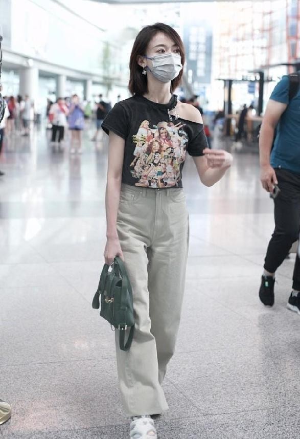 直筒裤还有一点乖乖的搭配方式,例如选择保守的裤子,没有破洞的元素,还是净版的牛仔裤,这种风格的直筒裤看起来有一点乖乖的,还有一种复古的感觉。