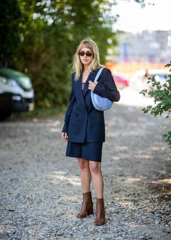 这种炫酷的感觉很适合搭配上中性风的服饰,例如配上男版的包包,男士的衬衫,呈现出很帅气的中性魅力,但这种中性魅力因为是露腿的穿搭,会看着更文艺,而不是传统的男性化风格。