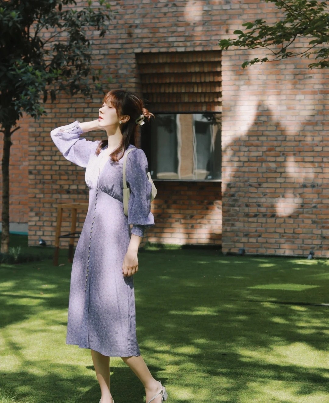 这条紫色的连衣裙,可以呈现出清新的感觉和浪漫的风格。这种宽袖的设计,也值得所有身材不那么出色的女性尝试。不用花费大把的力气在显瘦效果的构造上,就能收获一套可以藏肉的造型。