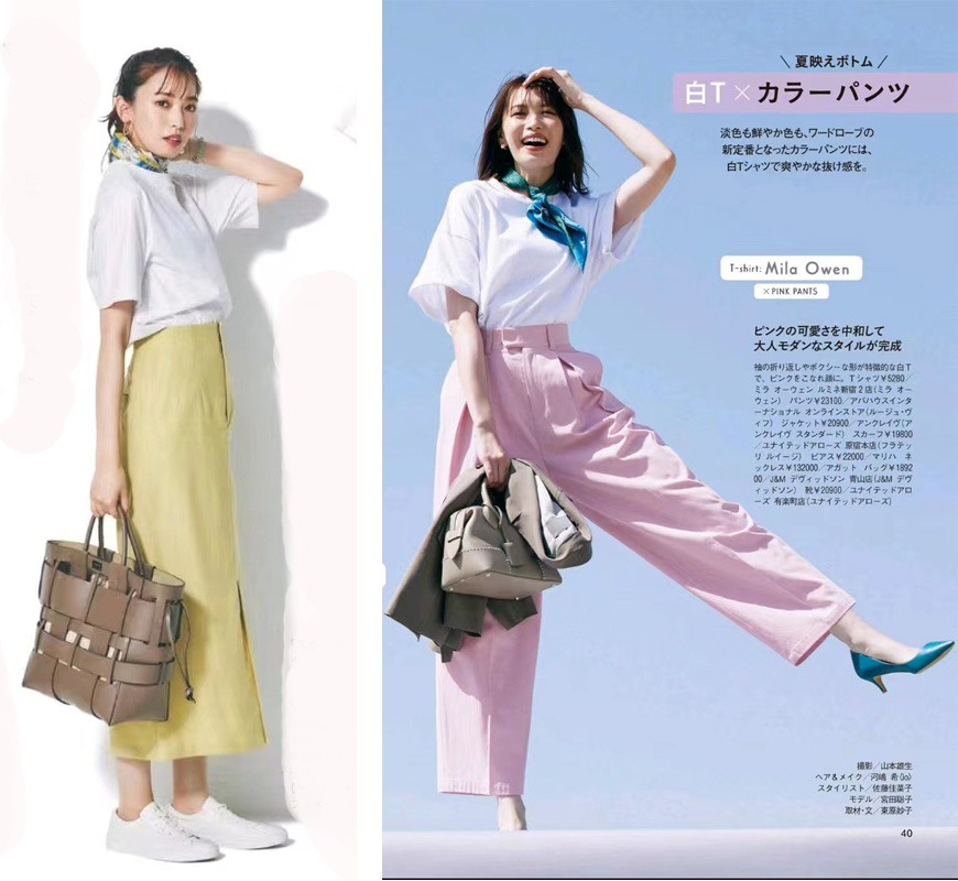 夏天穿衣想要营造层次感,最重要的手段就是通过配饰。比如白色T恤搭配彩色半裙或直筒西裤,可以系上一条印花小丝巾,既能增加整体着装的优雅感,又能增加层次感。又或者换成各种存在感强一点的金属项链或珍珠项链,也能带出层次感,而且整体会显得更精致和时髦。
