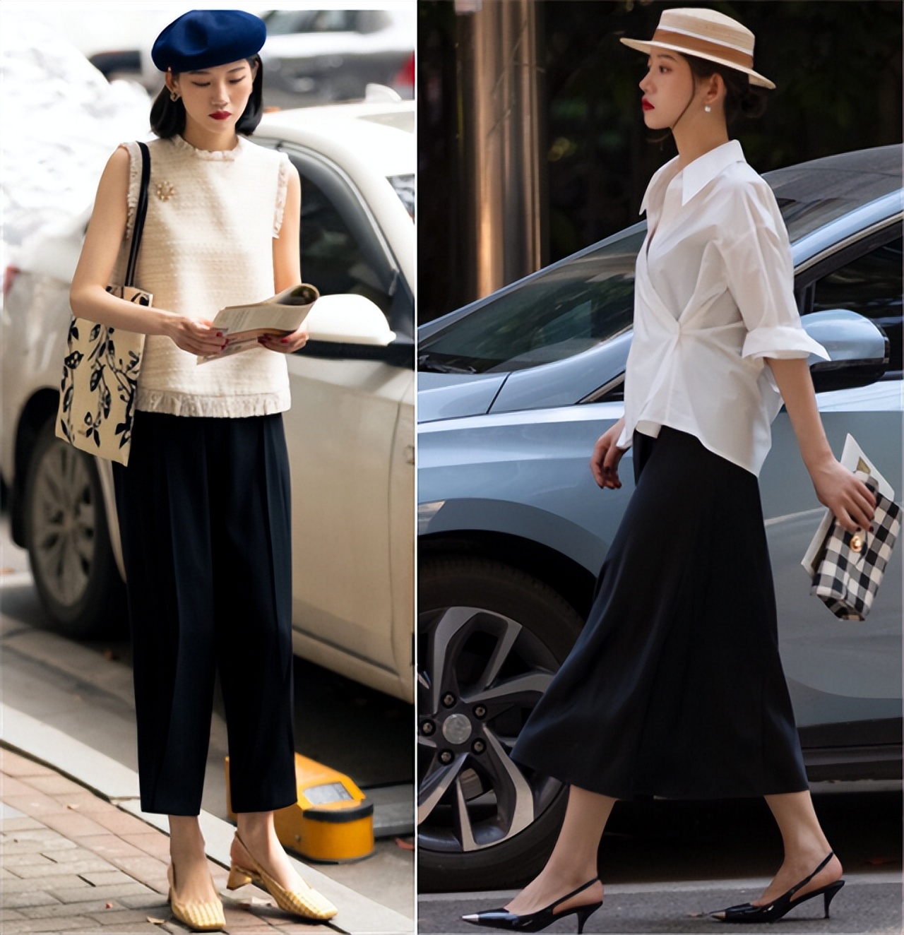 在这些时尚博主的搭配中,我们就经常会看到浅口绑带鞋的存在,用这种一字带的绑带或者是交叉绑带的设计展现出时尚感,看上去很有品味,而且细细的绑带也能够诠释出精致感,看上去才不会觉得沉闷。