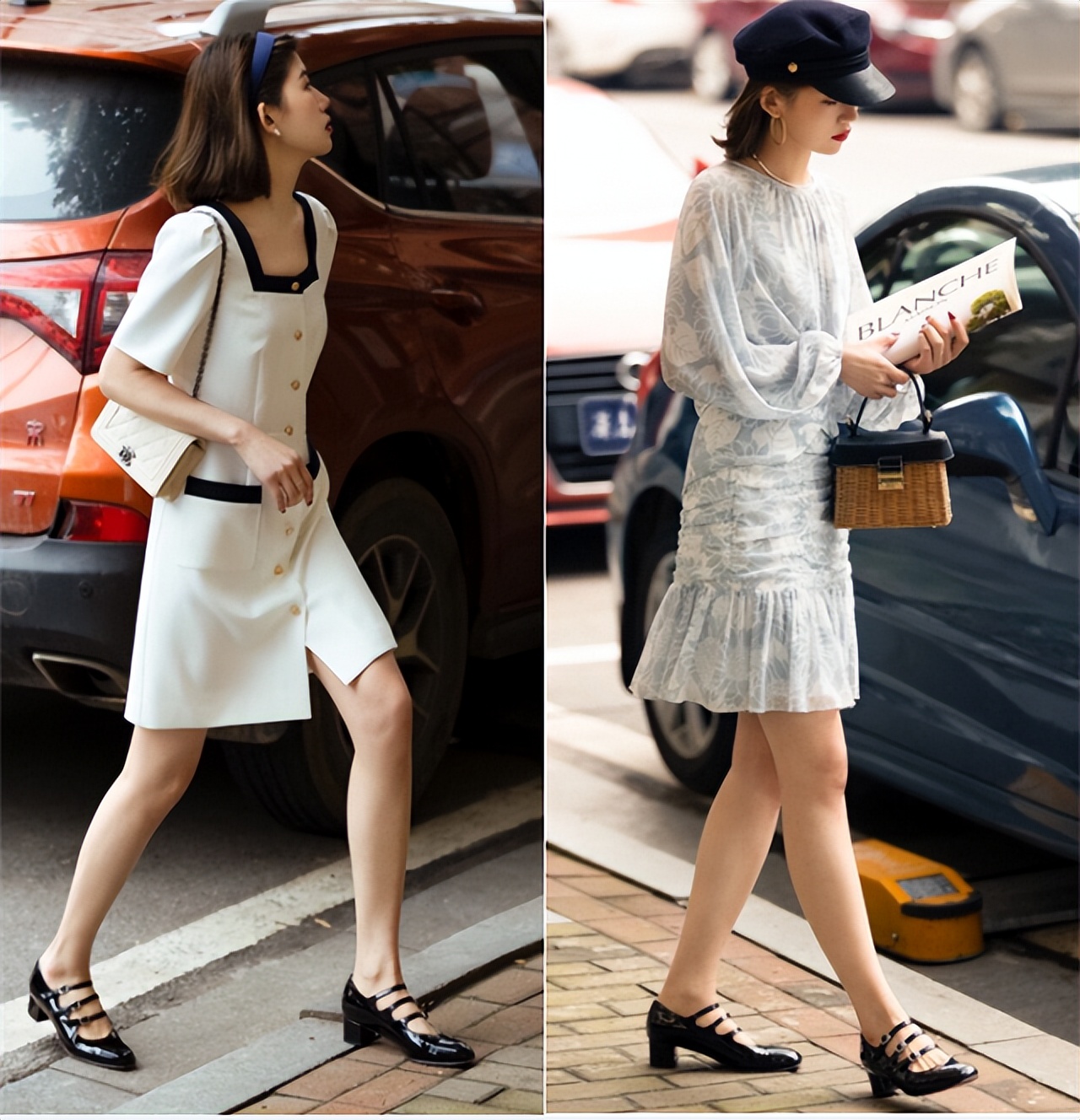 复古风流行的当下,越来越多人开始尝试用这种复古风的服装,而选择鞋子时,你也可以用一些在时尚圈中流行很久的鞋履,比如这种玛丽珍鞋就是一双极具复古感的鞋子,它的特点在于鞋跟一般都比较粗,鞋头偏圆润,而且材质一般都是漆皮。