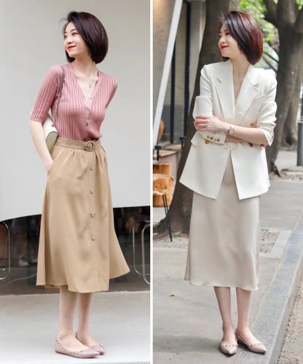 比如衬衫+烟管裤、T恤+阔腿裤、针织衫+半身裙等,这些都是两两风格相似的单品搭配到一起,整体看上去就会和谐许多,时尚又有美感。
