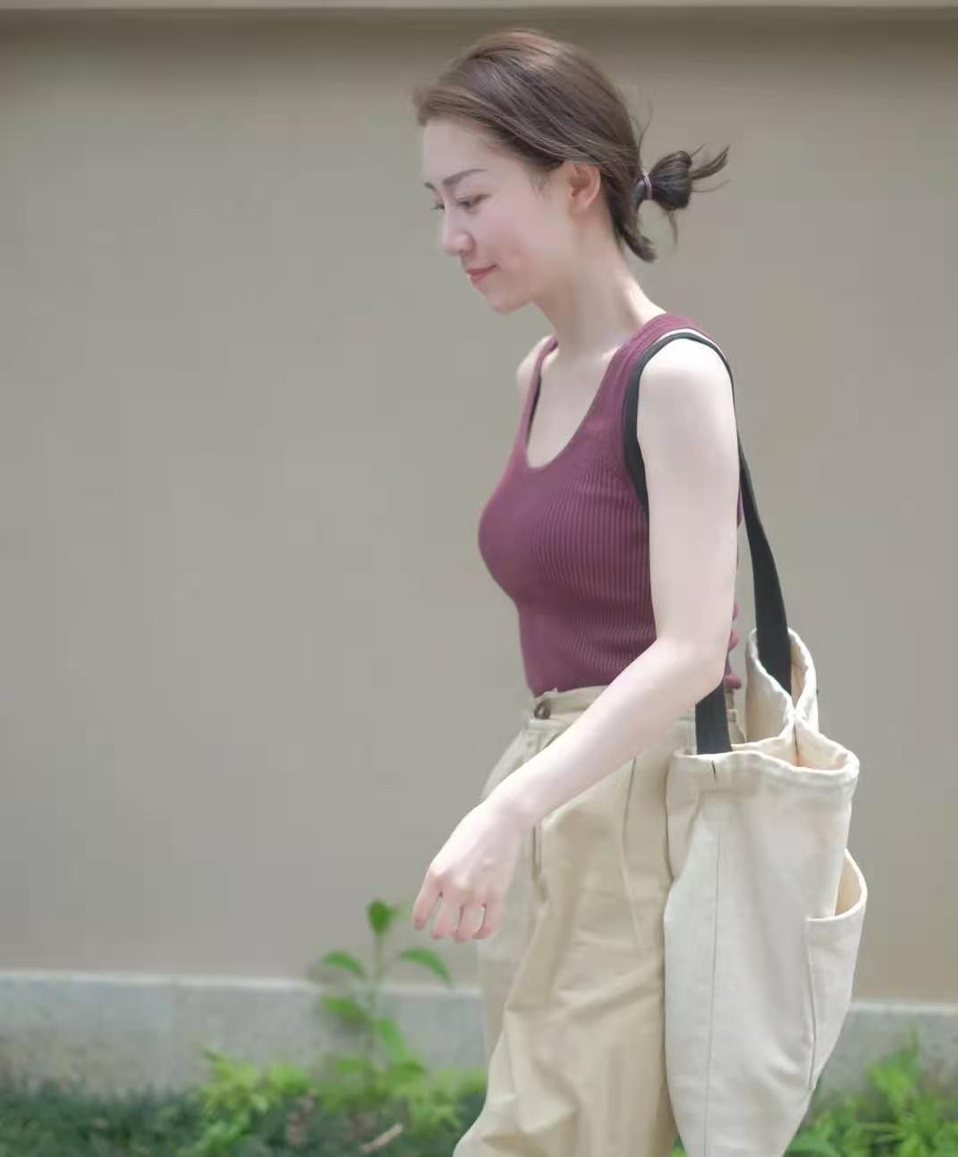 除了秀身材外,吊带背心的清爽度,也值得一提,因为它的露肤面积比较大,所以,穿在身上,格外凉快。