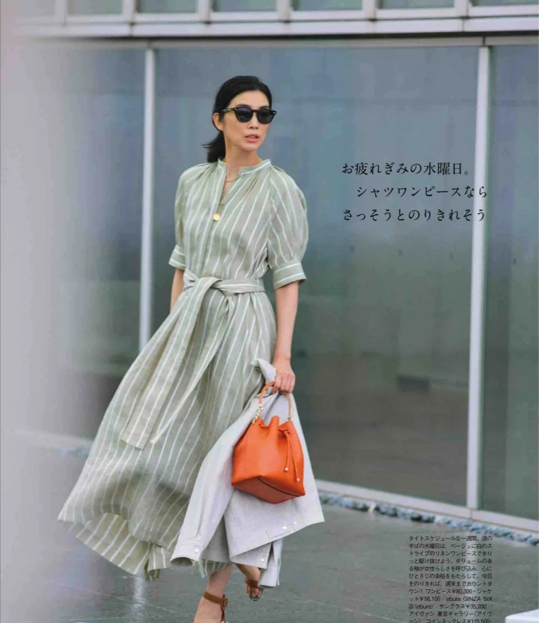 宽松一点的衬衫裙,无法打造出过于利落的着装,但是,当裙装有了腰带这一元素之后,就能通过腰带的收紧,体现出挺拔的曲线和更加好的状态。