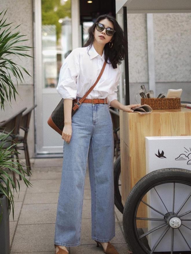 穿裤子时大家也可以先去考虑一下这种比较简单的牛仔阔腿裤,虽然看上去有些普通,但却是非常耐看的单品,而且像这种经典的蓝色牛仔裤穿在身上,风格也非常的低调和简约,日常生活中都不会觉得乏味。