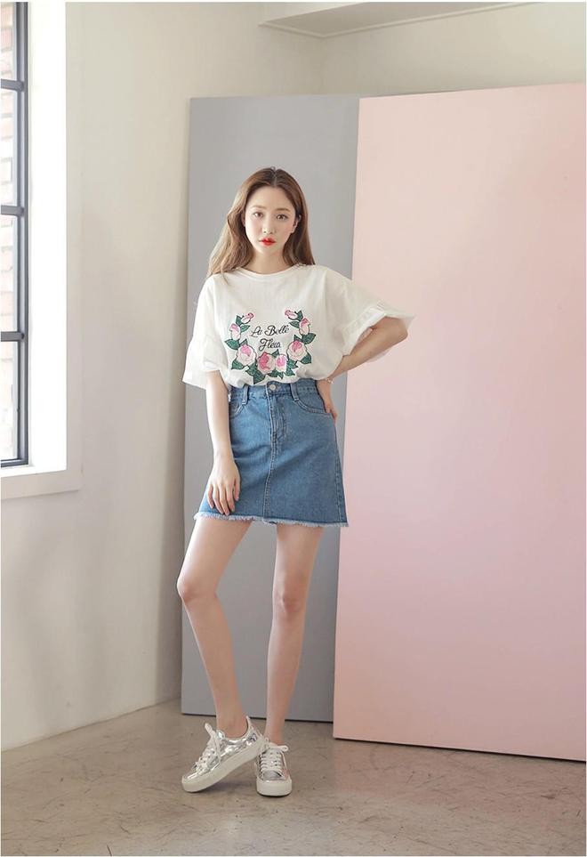 穿裙装时,你可以用这种牛仔半身裙展现出时尚感和高级感,蓝色牛仔半身裙的搭配也可以不经意间展现出魅力,而且像这种短裙的搭配很适合小个子,能够帮助你划分身材比例,拉伸双腿曲线。配上短款T恤显得青春又有活力,而且也会觉得非常轻便,脚踩一双小白鞋,上下色彩也能形成呼应。