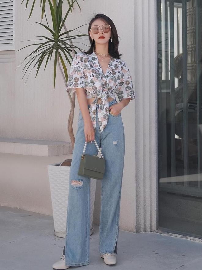 夏天穿牛仔裤时,可以多考虑一下这种宽松的裤型,尤其是下面这种宽松阔腿牛仔裤,这对于那些梨形身材的姐妹来说非常友好,同时也可以借助宽松的裤腿来把双腿劣势给遮住,看上去超级显瘦显高,轻松扬长避短。
