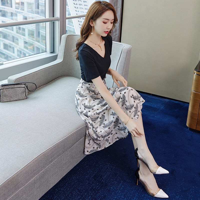 赫本风碎花雪纺印花连衣裙收腰御姐轻熟风气质女神范