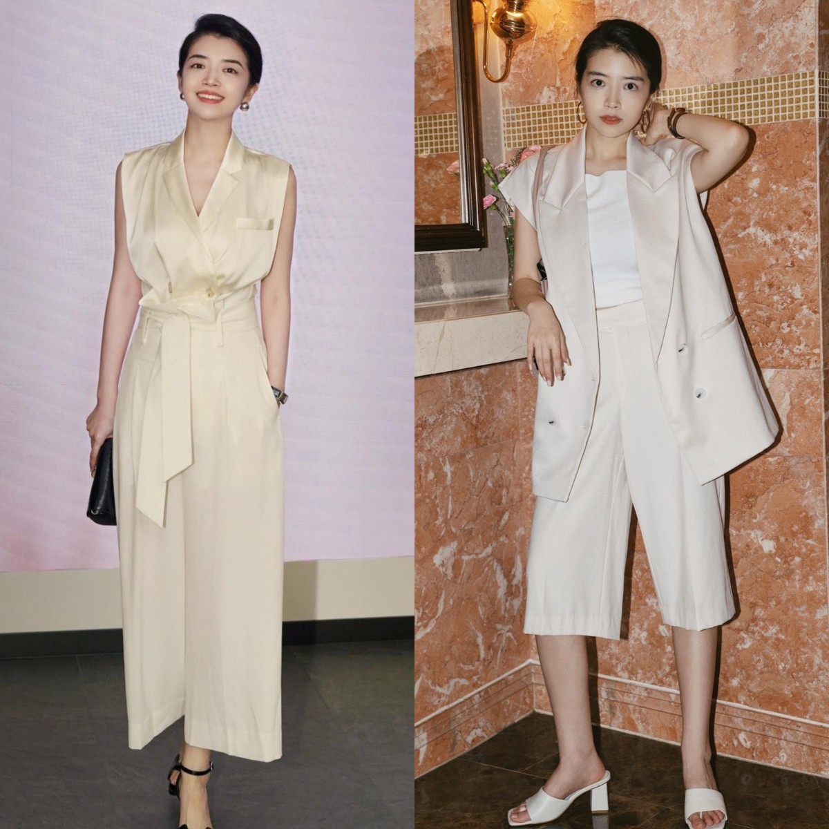 阔腿西装裤可盐可甜,上身秒变纸片人