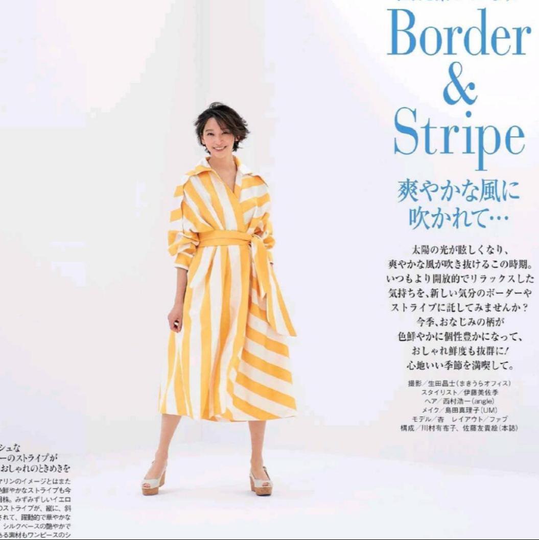 我们还可以选择颜色比较大胆一些的竖条纹裙装穿搭,如上图中明快活泼的黄色+白色竖条纹连衣裙,让你的搭配充满了新鲜感和青春朝气,利用同色系的腰带收腰,勾勒出优美的身姿曲线,穿出好身材比例。