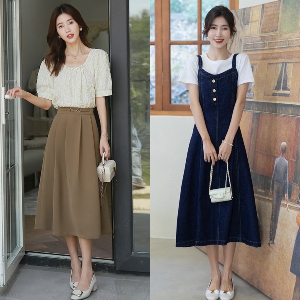夏季,最为常用的配色组合就是白色+基础色,一件休闲百搭的白色T恤,搭配上牛仔半身裙,简单休闲;如果觉得这样搭配太过单调的话,也可以试试博主穿的这种黑白碎花半身裙,搭配白T恤也是别有一番风味!