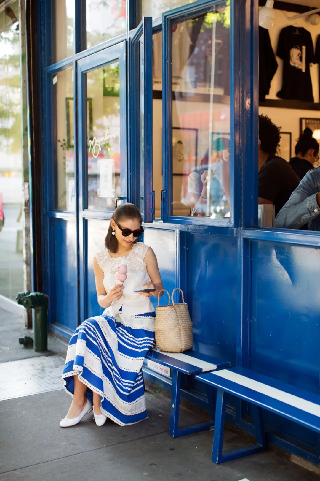 许多女性在日常搭配当中,如果穿腻了小白鞋的话,不妨换上一双轻便又小巧的芭蕾舞鞋,既能让造型看上去优雅时髦,又舒适度满分,这款纯白色芭蕾舞鞋配上蓝白半裙的造型,优雅又清爽,小姐姐看上去满满的淑女味道。